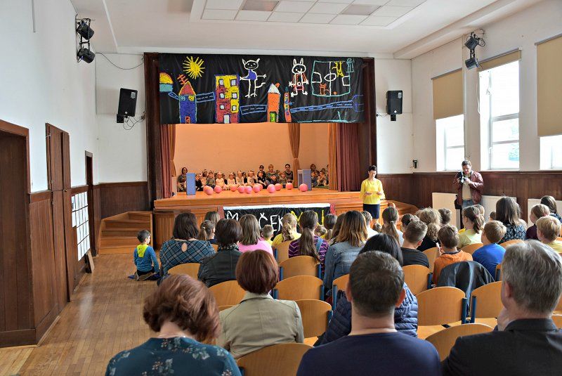 Vzgojiteljice so skupaj z otroki pripravile program ob predaji novih prostorov vrtca v namen. Otroci iz vseh štirih oddelkov vrtca (Gumbki, Balončki, Sončki in Zvezdice) so se predstavili z glasbenimi in plesnimi točkami iz predstave Maček Muri. In ker iz majhnega raste veliko, je dejala povezovalka programa Katarina Slakonja,  so se najmlajšim na odru pridružili tudi članice in člani šolskega pevskega zbora pod vodstvom zborovodkinje Maje Sakelšek.