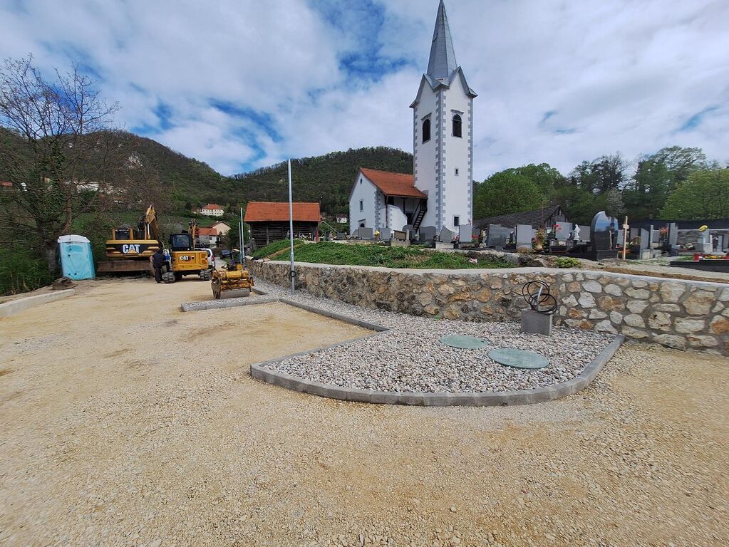 Poleg vežice potekajo tudi ureditve pokopališča in parkirišča