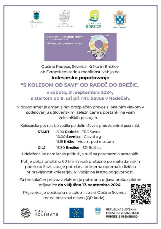 Dogodek, ki tradicionalno poteka v sklopu Evropskega tedna mobilnosti, organizirajo Občina Brežice, Mestna občina Krško, Občina Sevnica in Občina Radeče.