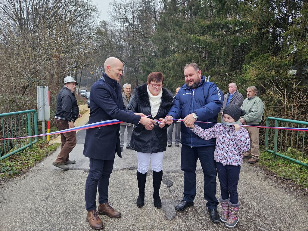 Trak so ob uradni predaji namenu prerezali Gajski, Harapin in Kržan, pomagala jim je tudi mlada domačinka Laura Balon, za nekaj kulturnega pridiha pa so s petjem poskrbeli Ljudski pevci Globoko.