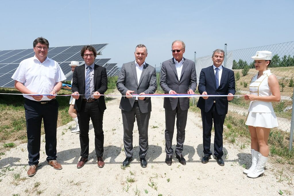 S simboličnim prerezom traku so jo pri sončnih celicah odprli minister za okolje, podnebje in energijo mag. Bojan Kumer, direktor družbe HESS Bogdan Barbič, generalni direktor GEN energije dr. Dejan Paravan, brežiški župan Ivan Molan in direktor družbe Riko Janez Škrabec.