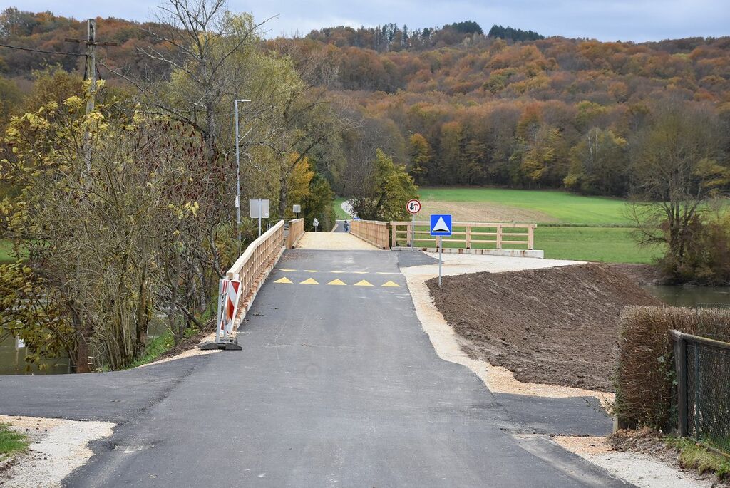Izvajalec del podjetje Rafael d.o.o. Sevnica je meseca maja začel s pripravljalnimi deli in v juniju z rušenjem obstoječega most. Izvajalec je uredil dostopno pot v strugi reke za porušitev mostu in kasneje za zabijanje pilotov za novi most. V strugi reke so bile postavljene obvestilne table za prepoved plovbe na področju gradbišča zaradi zagotavljanja varnosti. 9. oktobra je izvajalec obnove mostu zaključili z grobimi deli na mostu, dela so se nadaljevala z razširitvijo cestišča na obeh straneh mostu in izvedbo meteorne kanalizacije, ter nato s končno ureditvijo struge ob nasipih. Zaključna dela celotne investicije obnove mostu in ceste so bila izvedena do 14. 11 2023 (prometna ureditev, ipd). in 14. novembra tudi tehnično pregledana.