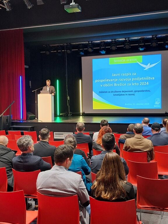 V ponedeljek, 21. oktobra, so se v prostorih Mladinskega centra Brežice zbrali podjetnice in podjetniki na javni predstavitvi rezultatov razpisa za pospeševanja razvoja podjetništva v občini v 2024. Župan Občine Brežice Ivan Molan je uspešnim prijaviteljem izročil podpisane pogodbe o sofinanciranju treh različnih namenov - sofinanciranje začetnih naložb, predstavitev na sejmih z novimi inovativnimi produkti in storitvami ter najemnin v starem mestnem jedru. Na razpisu je bilo uspešnih 60 popolnih vlog.
