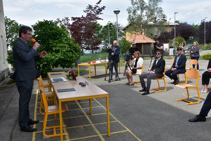 Zbrane na svečanem podpisu pogodb je najprej nagovorila ravnateljica OŠ Artiče Vesna Bogovič, ki je dejala, da se vsi zelo veselijo novega vrtca in boljših prostorskih pogojev. Artiško šolo obiskuje 240 otrok, v vrtcu pa imajo od 80 do 90 otrok. Prostorsko stisko vrtca, ki je bil pred leti zgrajen za dva oddelka, rešujejo z uporabo šolskih razredov in najemom prostora pri zasebnikih. Otroci iz vrtca iz skupine Balončki Martin Bučar Božičnik, Tinkara Čanžar in Zala Omerzu so deklamirali pesmico o vrtcu, ki jo je napisala vzgojiteljica Ruth Gramec, ob tej priložnosti so otroci županu Ivanu Molanu podarili tudi načrt novega vrtca, ki so ga izdelali sami, glasbeni utrinek k programu pa je prispevala učenka 7. razreda Ajda Ivanšek ob klavirski spremljavi učiteljice Stanke Turšič Pungerčar.