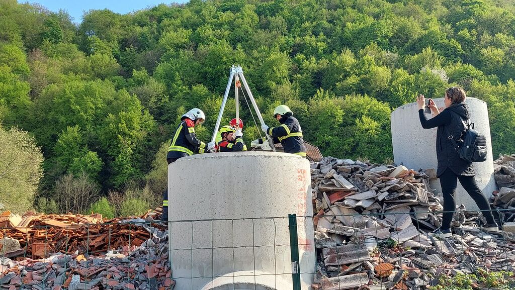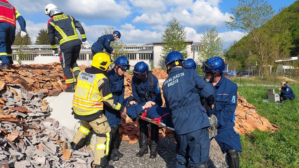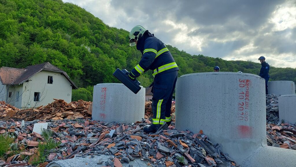 Z vajo so preverili delovanje naprave za iskanje zasutih v ruševinah LM1, ter usposobljenost enot Civilne zaščite občine Brežice za iskanje zasutih v ruševinah ob porušitvi stavb.