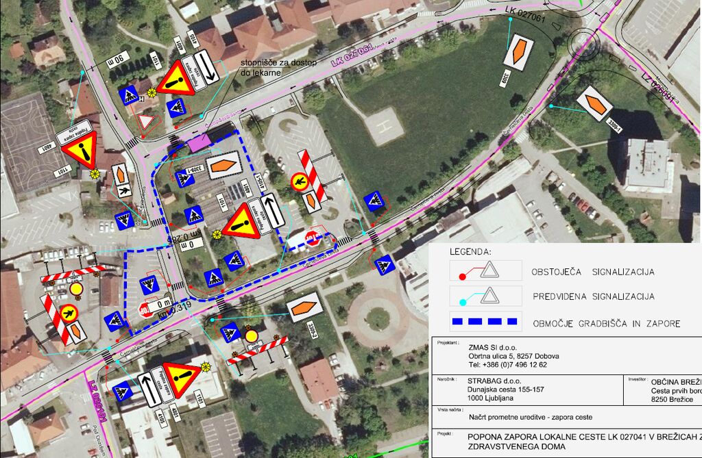 Občina Brežice obvešča, da bo od ponedeljka, 6. 3. 2023 do predvidoma 3. 3. 2024 zaradi organizacije gradbišča, zavarovanja del in pomanjkanja prostora potrebna popolna zapora lokalne cesto LK 027061 od km 0.285 od km 0.319 (cesta med ZD Brežice in Cvetličarno Žičkar/parkiriščem za Gimnazijo Brežice).