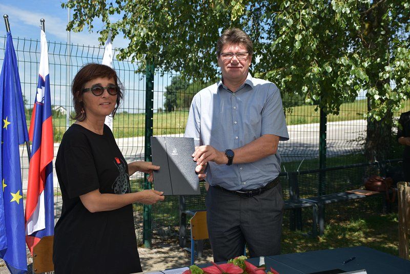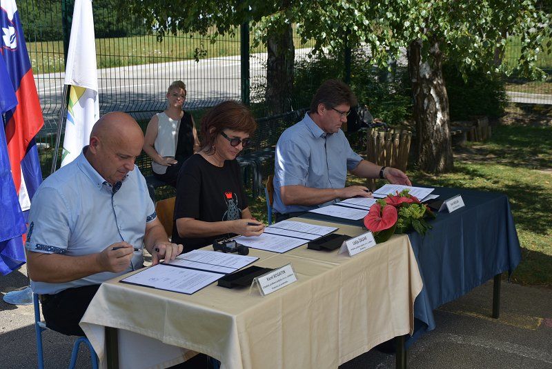Pogodba za gradnjo vrtca sta v imenu izvajalca STRABAG d.o.o. podpisala direktorica Lidija Žagar in Karel Bogatin. Dogodek je s pesmijo začela in zaključila učiteljica in pevka Nina Berger, otroci iz vrtca so zapeli pesmico o vrtcu in ob tej priložnosti županu Ivanu Molanu podarili ključ vrtca. Dogodek je povezovala Vesna Kržan.