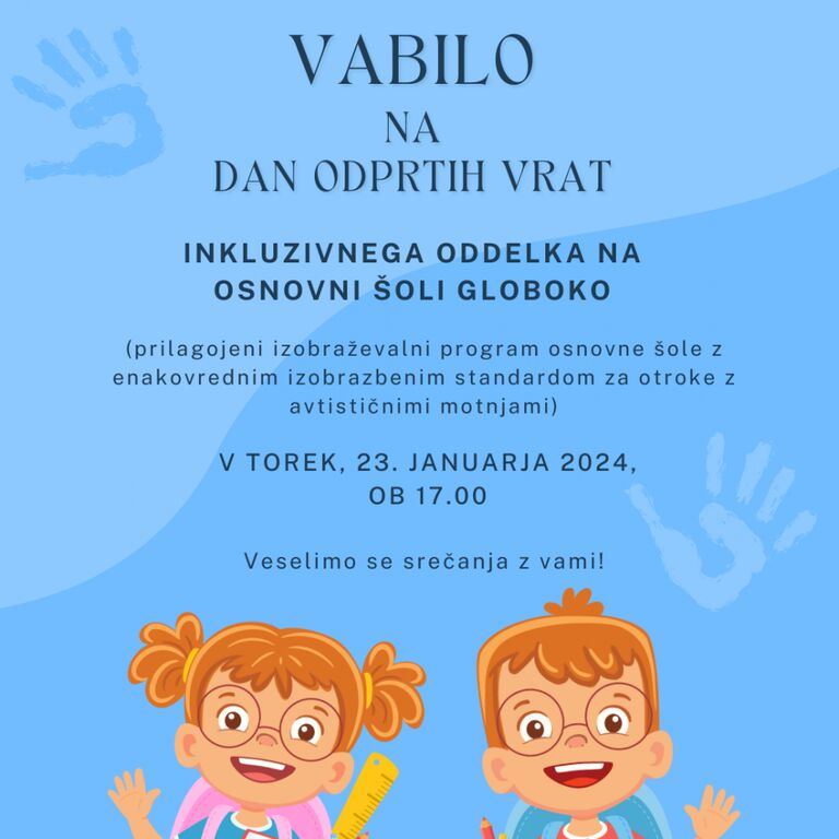Osnovna šola Globoko vabi na dan odprtih vrat edinega izobraževalnega programa osnovne šole z enakovrednim standardom za otroke z avtističnimi motnjami v regiji Posavje, ki deluje od leta 2020 in gre za prvi dislocirani oddelek Zavoda za gluhe in naglušne zunaj Ljubljane, Maribora ali Portoroža.