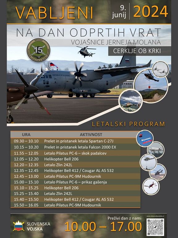 Obiskovalci se bodo lahko seznanili z vojaškim poklicem in možnostjo vključevanja v Slovensko vojsko. Na ogled bodo statične in dinamične predstavitve letal in helikopterjev Slovenske vojske ter vojaške opreme in bojnih vozil. Prvič bo na ogled tudi letalo SPARTAN C 27J. V sklopu pestrega programa načrtujejo tudi spust pripadnikov specialne enote vojaške policije po vrvi iz helikopterja. Na lokaciji bo organizirana predstavitev organizacij, služb ter društev, ki negujejo domoljubje in vojaško tradicijo.