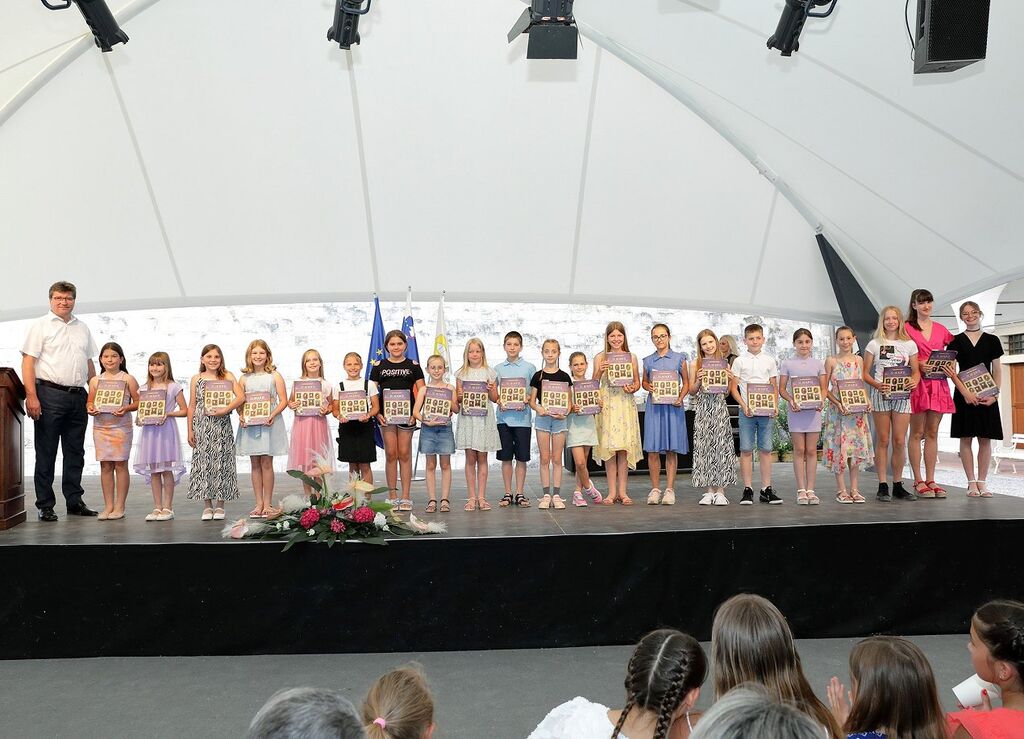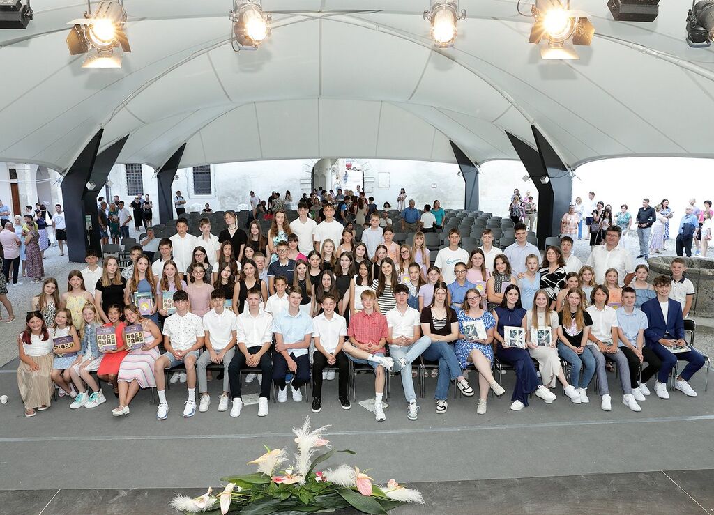 V torek, 18. junija, je župan Občine Brežice Ivan Molan na grajskem dvorišču Posavskega muzeja Brežice sprejel najuspešnejše devetošolce in devetošolke ter osnovnošolke in osnovnošolce, ki so se v šolskem letu 2023/2024 še posebej odlikovali. Drugič so bila podeljena knjižna priznanja za naziv Zlata bralka, zlati bralec, ki si ga pridobijo devetošolci z branjem za Bralno značko vseh devet let osnovne šole. Letos je osnovnošolsko izobraževanje z izjemnim učnim uspehom zaključilo 40 devetošolk in devetošolcev iz osmih osnovnih šol v brežiški občini. Ob tej priložnosti je župan Ivan Molan učenkam in učencem v priznanje in spomin podelil knjižne nagrade, kar še potrjuje naziv Branju prijazna občina, ki ga je brežiška občina prejela leta 2018.
