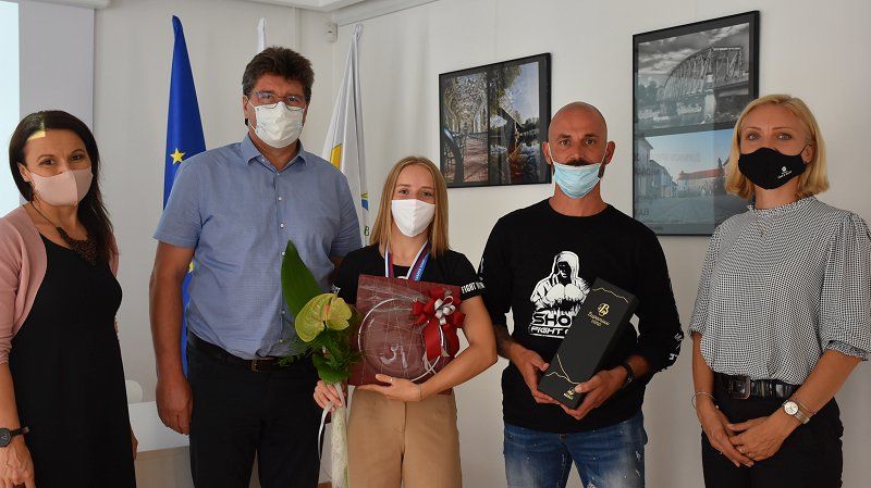 Župan je nadarjeni športnici ob tej priložnosti izročil simbolično darilo in ji zaželel obilo športnih uspehov tudi v prihodnje.