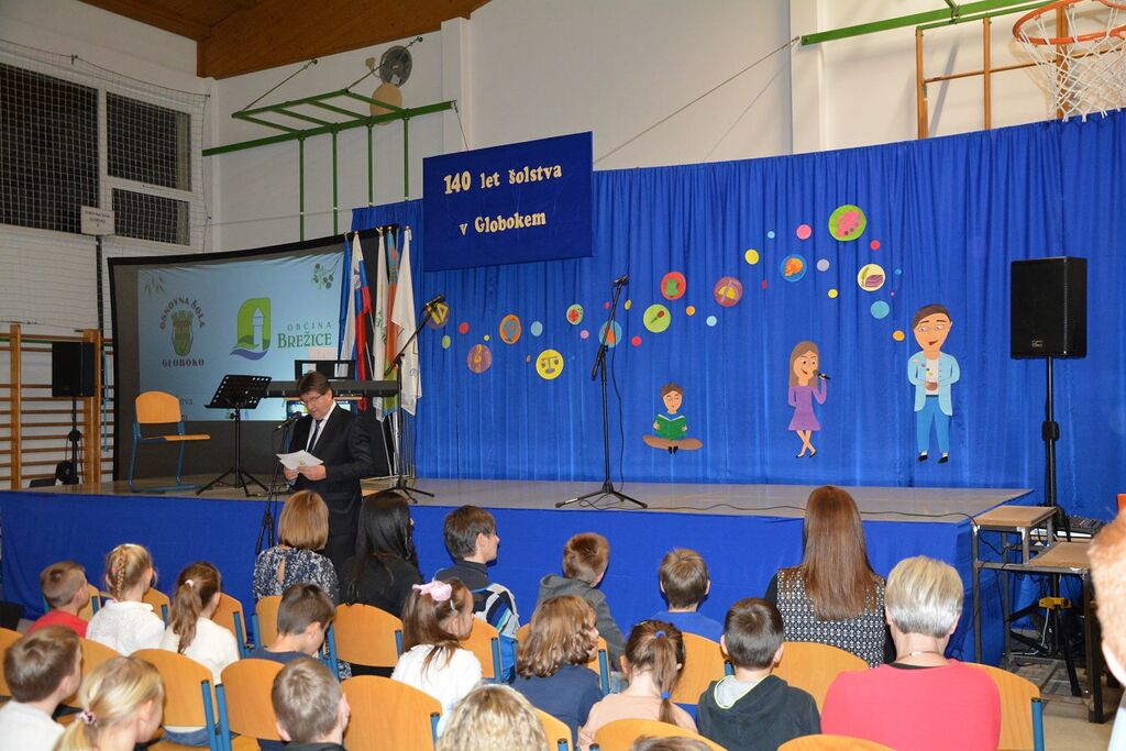 Ob tem pa je poudaril: ''Vaša osnovna šola ima bogato 140-letno zgodovino. Bili ste med prvimi šolami v Sloveniji, ki je uvedla devetletko, v svojih prostorih imate tudi kot prvi v Posavju inkluzivni oddelek za otroke z motnjami avtističnega spektra. Učenke in učenci ter učitelji ste vključeni v različne projekte od izobraževalnih do vzgojnih in športnih programov. Pohvalite se lahko tudi z različnimi priznanji, med temi bi posebej omenil naziv Naj učitelja leta 2011 in državno priznanje Blaža Kumerdeja za izjemne dosežke pri razvoju. Čestitam vam za dosedanje uspeha in vam tudi v prihodnje želim, da OŠ Globoko poleg kakovostne izobraževalne institucije ostane kraj, kjer se učenci in otroci prijetno počutijo, kjer so sprejeti in kamor se radi vračajo! Vaša šola in vrtec sta primer dobre prakse uspešnega sodelovanja z lokalno skupnostjo in seveda tudi s starši. 15 let že s svojimi učitelji in učenci ter otroci iz vrtca soustvarjate tradicionalno prireditev Globoko poje, ki s pesmijo povezuje celoten kraj in prispeva h kulturnemu utripu vaše krajevne skupnosti. Kako pomembna je glasba dokazuje tudi 30. obletnica šolskega glasbenega festivala, ki daje mladim priložnost, da se predstavijo občinstvu skozi glasbeno ustvarjanje, hkrati pa ima dogodek dobrodelno noto z zbiranjem sredstev za šolski humanitarni sklad.''