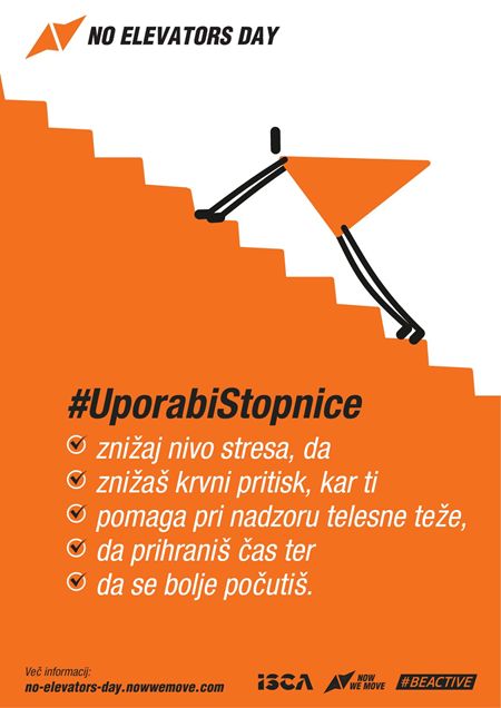 V letu 2025 obeležujemo 11. obletnico dneva brez dvigal, ki se praznuje in izvaja zadnjo sredo v aprilu. Na NIJZ spodbujamo, da se nam pridružite in že danes izberete stopnice namesto dvigal. Z uporabo stopnic vztrajajte in ob redni izvedbi opazili boste pozitivne spremembe v vaši telesni pripravljenosti in dobrem počutju.
