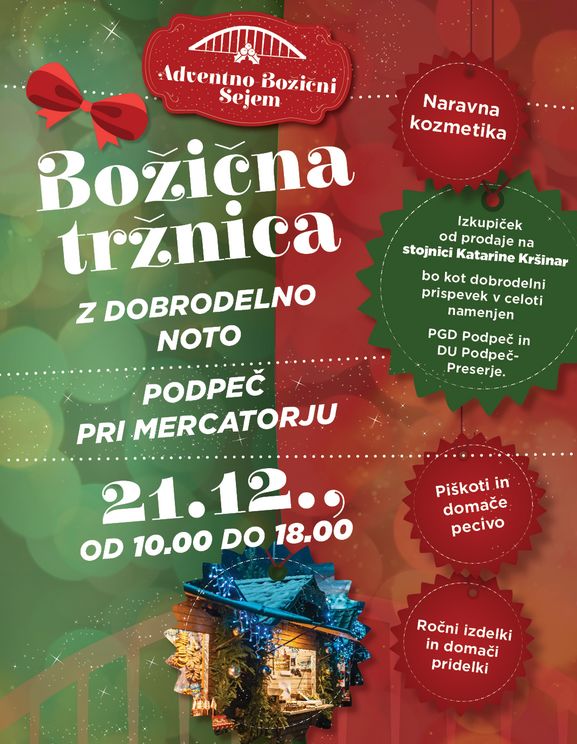 V soboto, 21. decembra med 10. in 18. uro, lepo vabljeni na Božično tržnico z dobrodelno noto pri Mercatorju v Podpeči.
