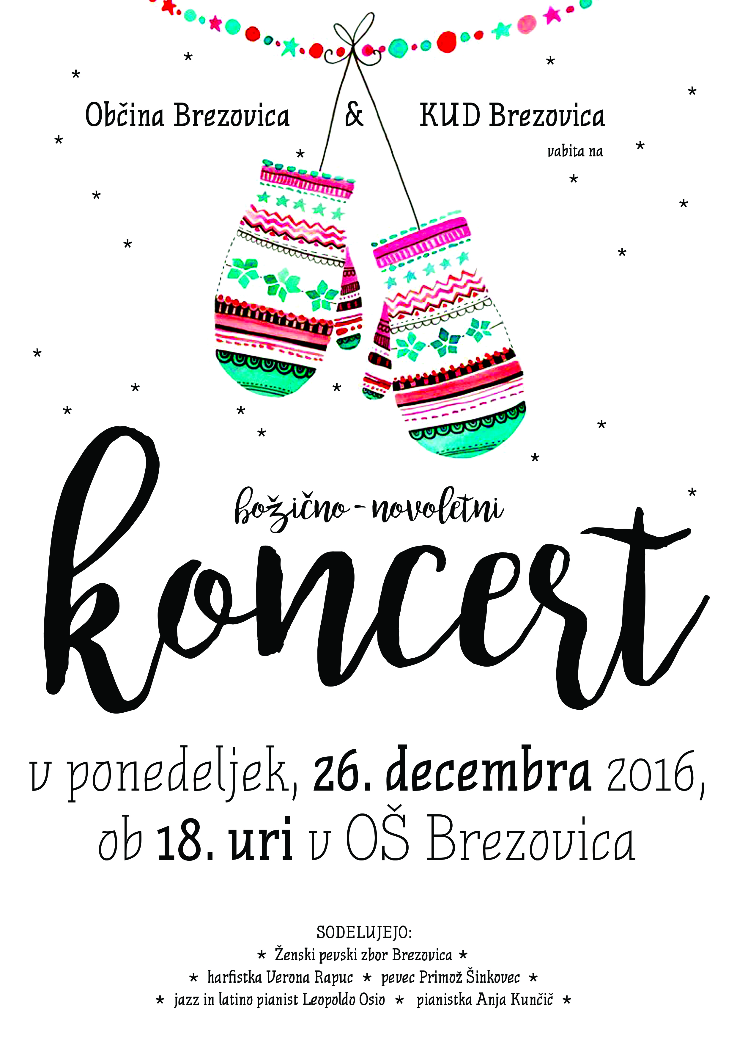 26. 12. 2016 ob 18. uri v OŠ BREZOVICA: Ženski pevski zbor Brezovica vabi na Božično-novoletni koncert z gosti