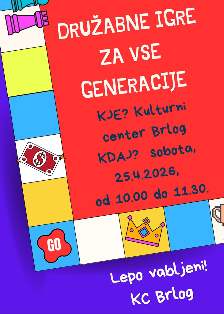 Pridite katerokoli 2. ali 4. soboto ob 10ih v KC Brlog in se preizkusite v kateri izmed teh ali kakšni drugi igri!