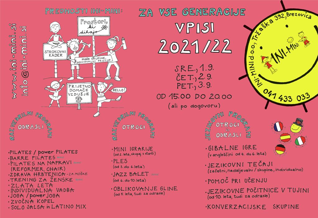 INI-MINI d.o.o. - Hiša izobraževanja, športne rekreacije in dobrega počutja za otroke in odrasle, vabi na vpise v vse programe za šolsko leto 2021/22.