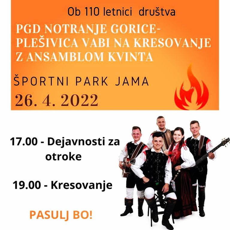PGD Notranje Gorice - Plešivica Vas ob 110 letnici vabi na tradicionalno kresovanje v Športni park Jama v Notranjih Goricah.