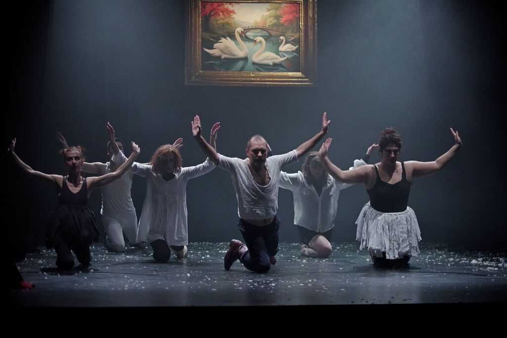 KD MAH teater vabi na gostujočo predstavo v izvedbi skupine HLODI KUD Franc Kotar Trzin, ki vsebinsko ohranja fokus na tragični ljubezenski zgodbi, vendar skozi predstavo raziskuje različne oblike in obraze ljubezni z vsemi pritiklinami, ki jih ljubezenski odnosi prinašajo. Poleg fabulativne linije pa Labodenje po jezeru vzpostavlja metagledališki nivo, ali bolje rečeno metagibalni nivo, saj ljubezen razume tudi kot ljubezen do gledališča in giba, ter skozi to išče svobodo. Ker ljubezen osvobaja.