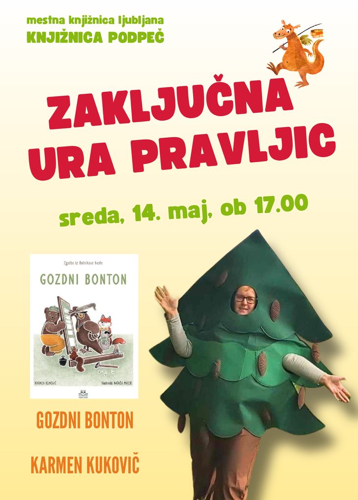 preden se pravljičarke poslovijo in odidejo čez poletje iskat nove pravljice, vas še enkrat vabimo na zabavno, ustvarjalno in poučno uro pravljic s Karmen Kukovič, kjer bomo spoznali gozdni bonton in zakaj je pomembno, da ga poznamo in upoštevamo.
