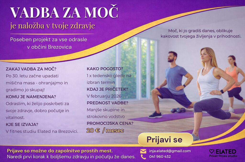 V fitnes studiu Elated na Brezovici (zraven bencinske črpalke Logo).