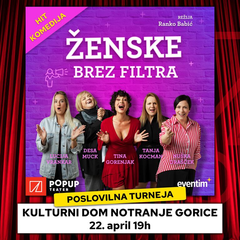 ŽENSKE BREZ FILTRA je komedija, kjer 5 žensk brez zadržkov govori o temah, ki so marsikomu blizu, a si jih redko kdo upa naglas izreči.