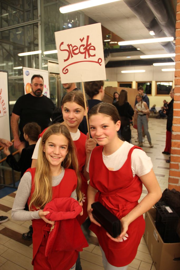 Donatorji so nam omogočili srečelov, kjer je bila vsaka srečka dobitna. Glavni nagradi sta bili otroško in mladinsko kolo. Po celotni avli okrašene osnovne šole so bile stojnice polne čudovitih izdelkov, ki so jih otroci za bazar izdelali sami.