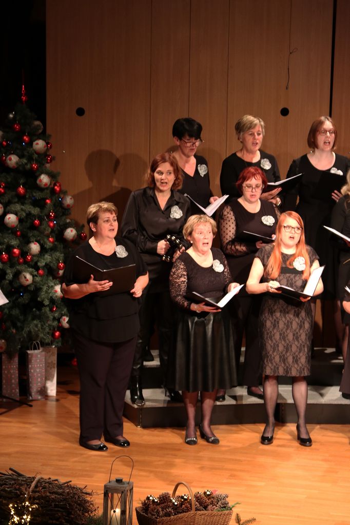 Zbor je na klavirju ves čas spremljala pianistka Nadja Rus, vodila pa ga je zborovodkinja Sonja Sojer. S svojo melodijo so zbrane odpeljale na potovanje članice godalnega tria Dolce. Zaigrale so pesmi »Can't help falling in love« ter »Mamma Mia«, kasneje pa še »Ružo crvena« in pesem z naslovom »Zadnja večerja«. Ženski pevski zbor je odpel še kopico pesmi, kar nekaj od teh je bilo božično obarvanih, na primer pesem »Božično drevo« in »Rudolf«. Za konec so, v stilu praznikov, večer zaključile z voščilom in pesmijo »Silvestrski poljub«.