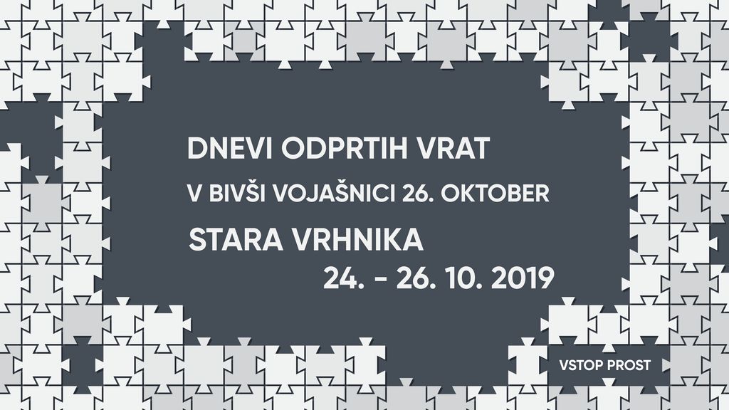 Vljudno Vas vabimo na dneve odprtih vrat, ki bodo potekali med 24. in 26. oktobrom 2019 v bivši Vojašnici 26. oktober na Stari Vrhniki.