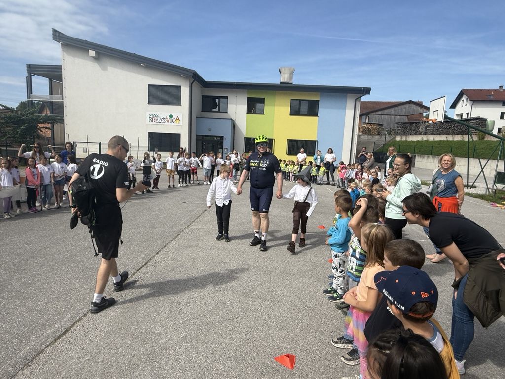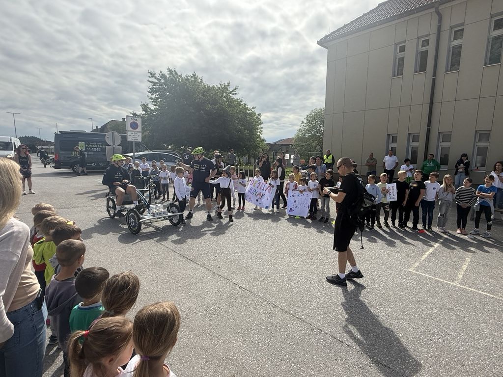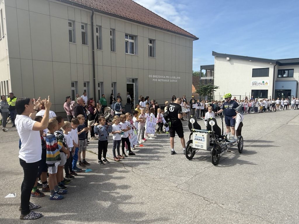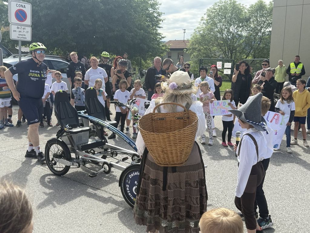 Po krajšem druženju se je Deželak odpravil še pred Podružnično osnovno šolo Notranje Gorice, kjer so ga z navdušenjem sprejeli najmlajši učenci. Ob petju in vzklikih so mu izkazali spoštovanje in veselje, da so lahko tudi sami del te srčne zgodbe.