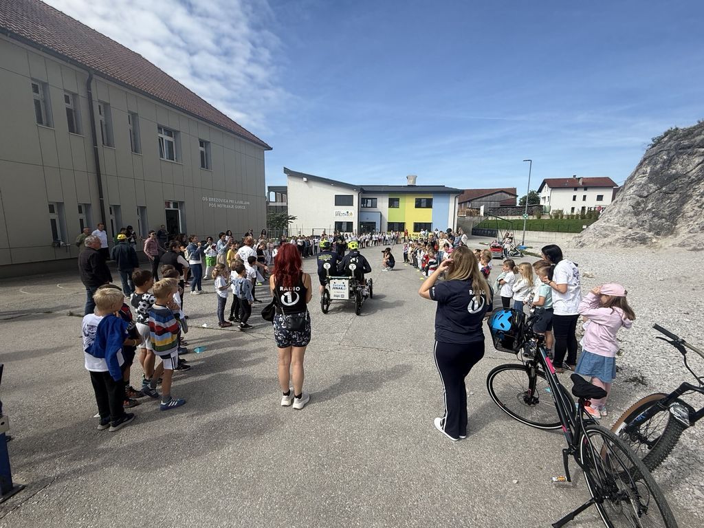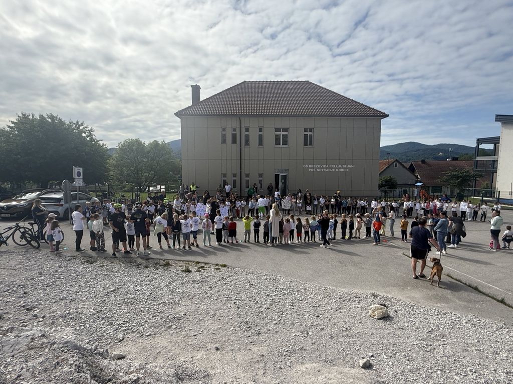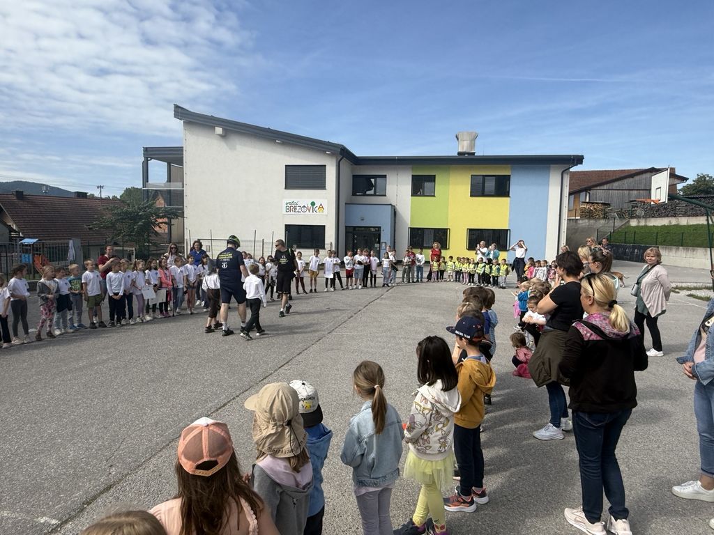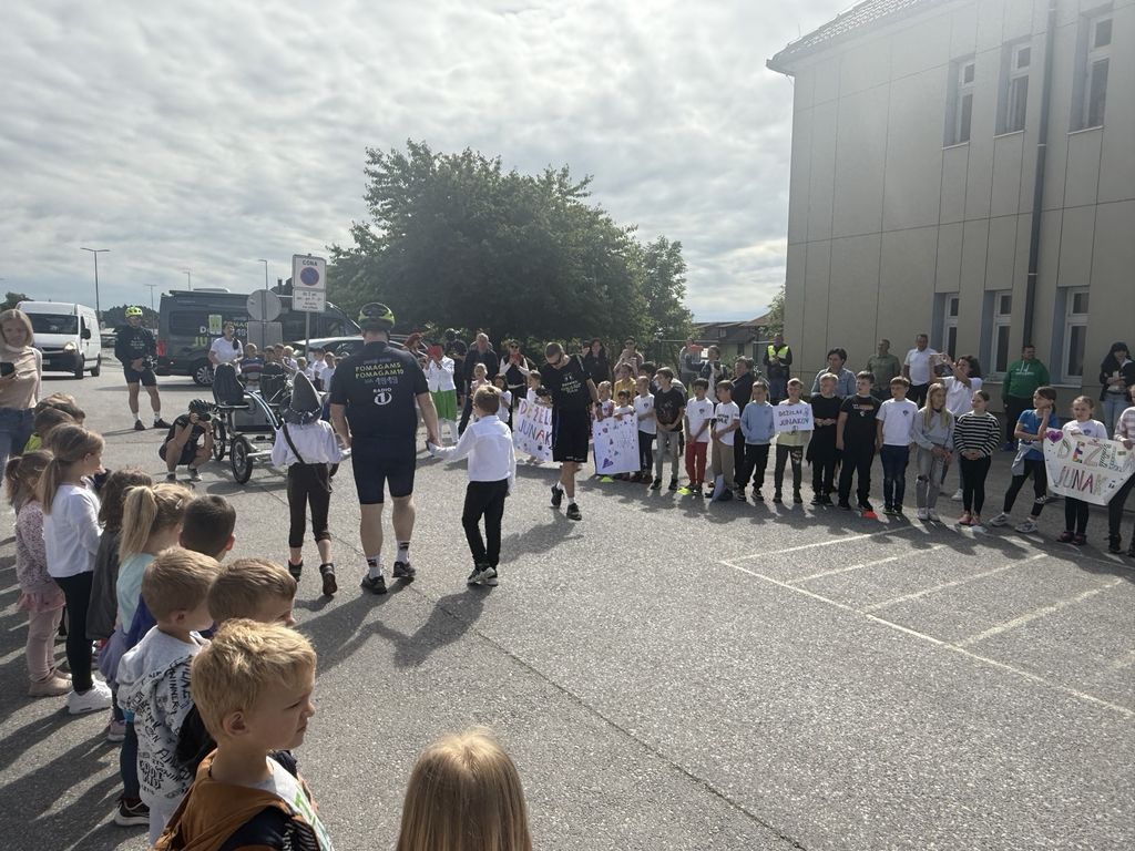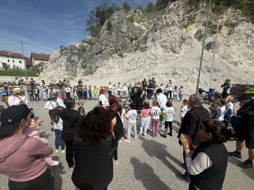 Po krajšem druženju se je Deželak odpravil še pred Podružnično osnovno šolo Notranje Gorice, kjer so ga z navdušenjem sprejeli najmlajši učenci. Ob petju in vzklikih so mu izkazali spoštovanje in veselje, da so lahko tudi sami del te srčne zgodbe.