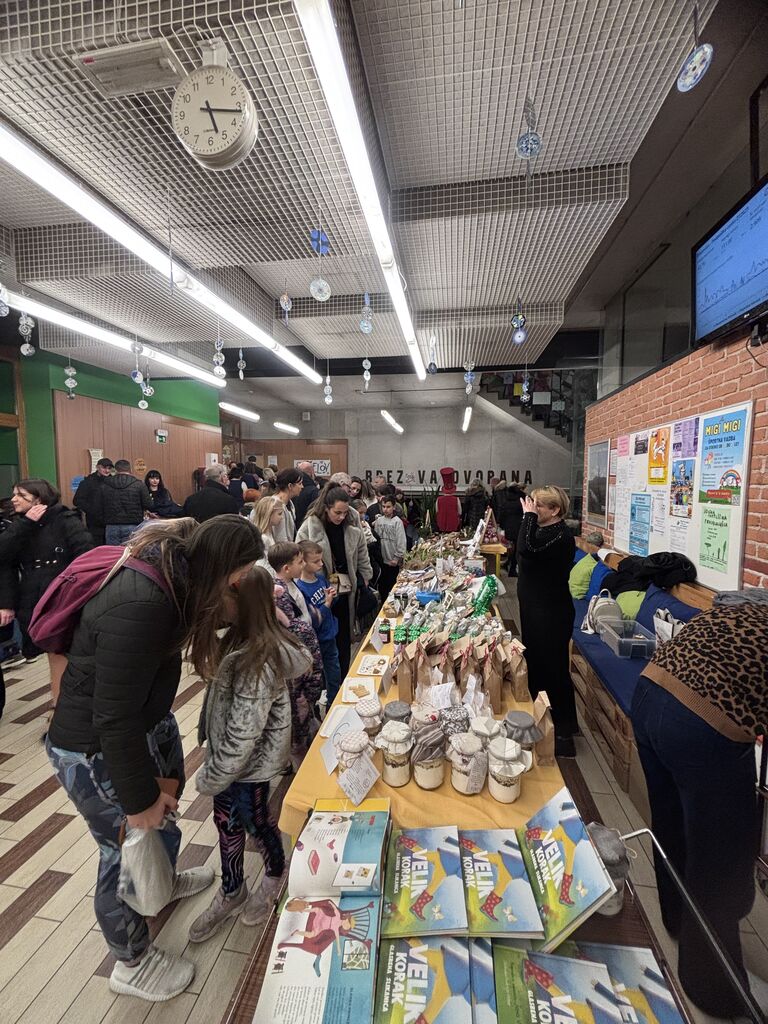 Otroci iz vrtcev in osnovne šole so skupaj s svojimi mentorji pripravili bogato ponudbo izdelkov – od unikatnih voščilnic in okraskov do lično pripravljenih daril, ki so nastajala zadnje tedne. Obiskovalci so lahko uživali tudi ob domačih dobrotah, tradicionalnih poticah, čaju in drugih prigrizkih.