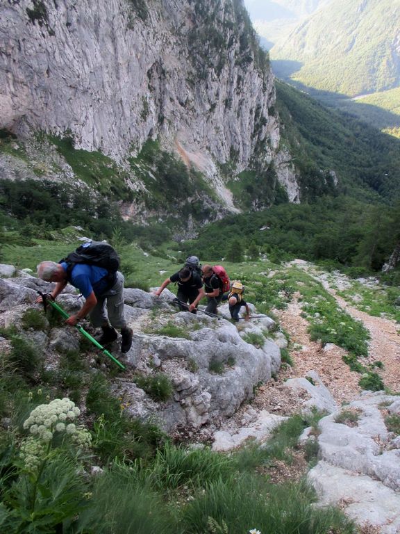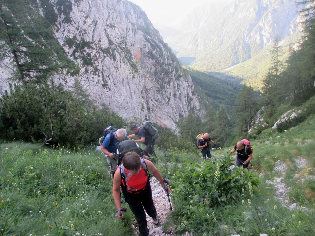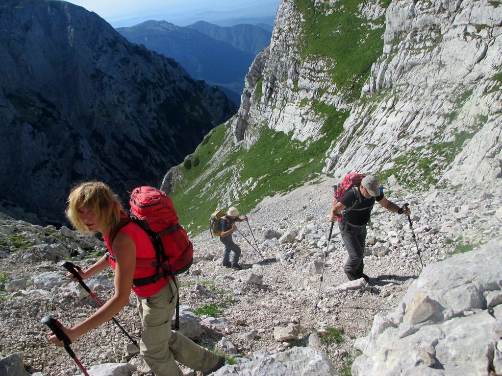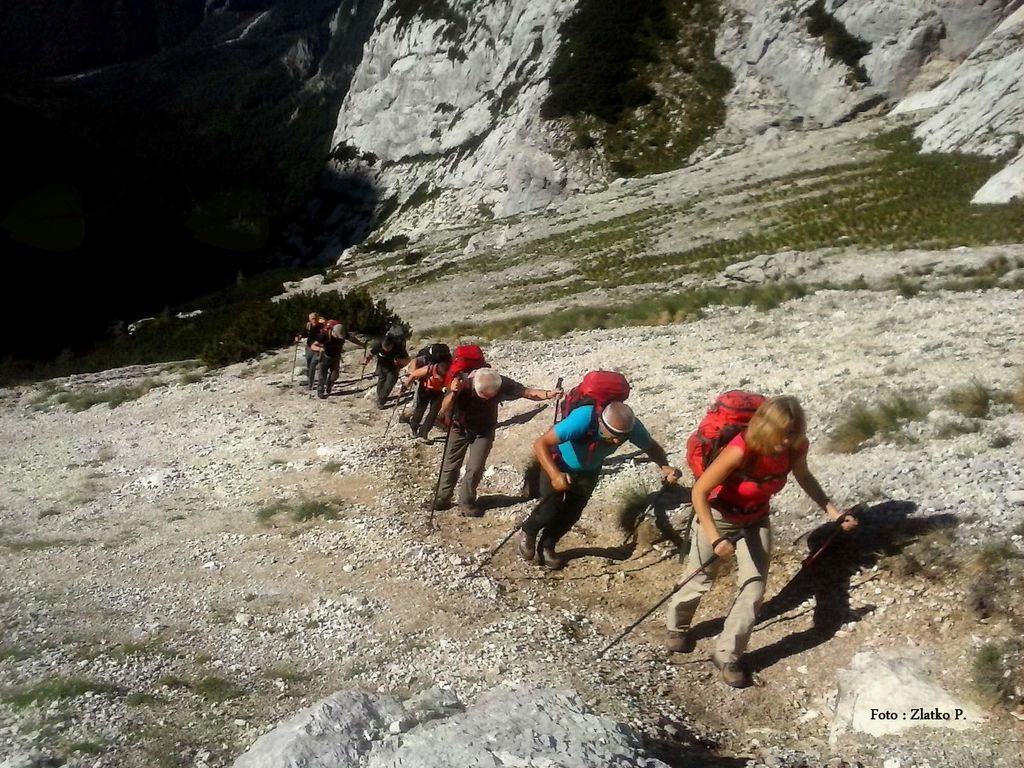 Vračali smo se po isti poti nazaj v dolino. Zelo počasi, zelo previdno, kajti strmina je res huda. Ohladili smo se šele pri Juriju. Bilo je res naporno. Premaganih več kot 1500 m višincev. Osvajalci so bili veseli tako razgledov, vrhov kot družbe. Drugi pa tudi, da smo jih odnesli brez hujših poškodb. Žal je tudi to del planinarjenja. Narava nas opozarja in je vedno močnejša od nas, to pa moramo spoštovati.