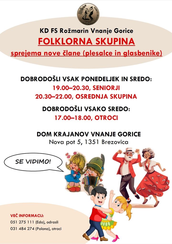 Lokacija: Dom krajanov Vnanje Gorice, Nova Pot 5, 1351 Brezovica