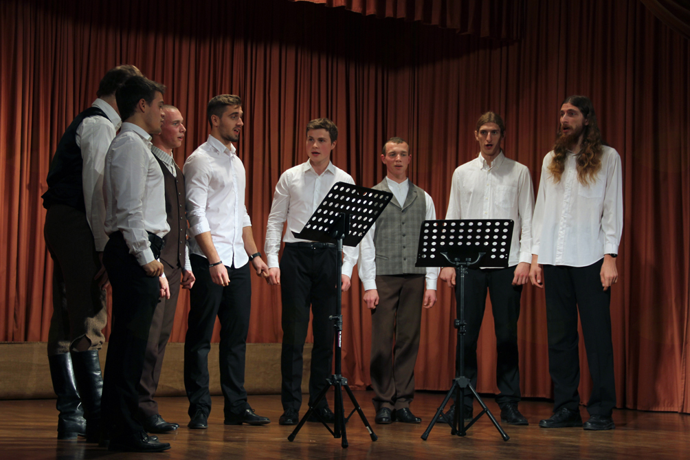 Kot gostje večera so nastopili Podpeški pobi in najprej zapeli dve ljudski pesmi Eno rožco in Rezijanska.
