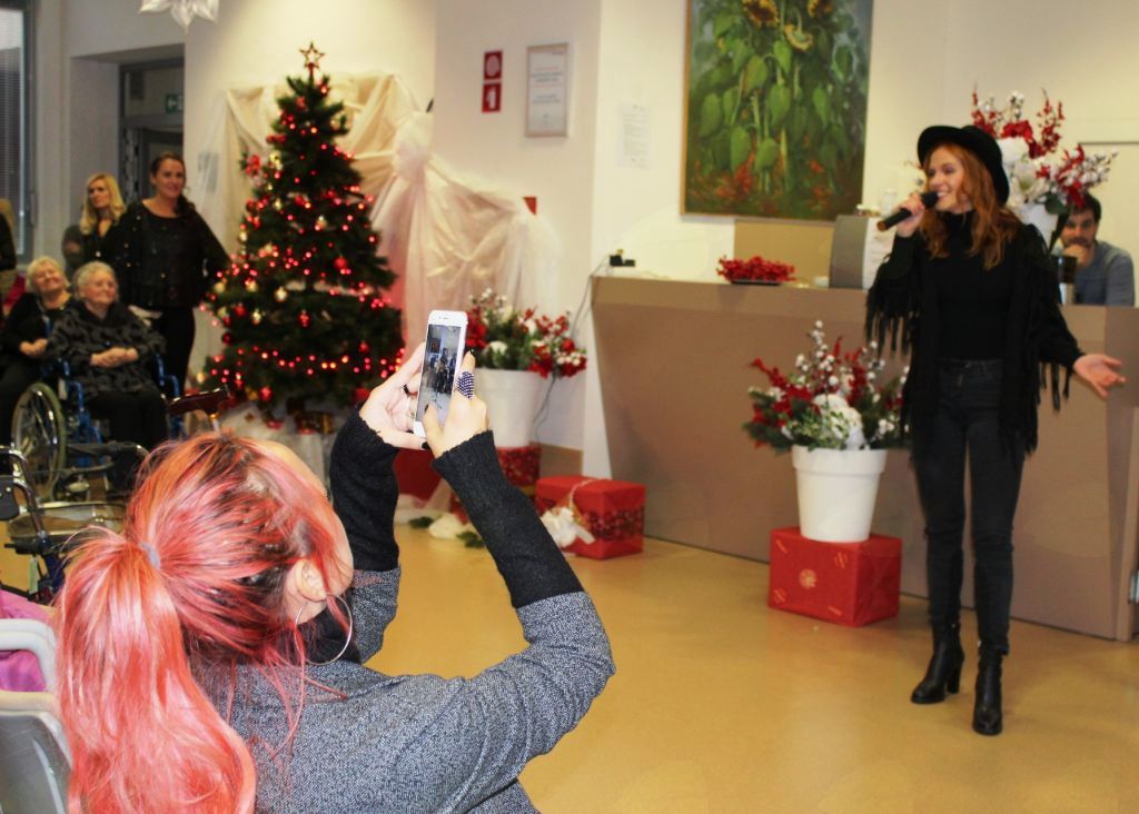 Modna revija pa ne bi bila popolna in čarobna brez dveh prav posebnih gostji; Nine Šušnjara in Nine Pušlar. Modna oblikovalka, Nina Šušnjara je v našem centru že dobro poznana, tudi tokrat je svetovala glede stajlingov in poziranja na modni pisti. Po modnem defileju nas je prvovrstna Nina Pušlar očarala s svojimi pesmimi, ki so odzvanjale po celem centru starejših. Za čudovit zaključek sta poskrbeli Nina in naša draga Urša, ki sta zapeli v duetu.