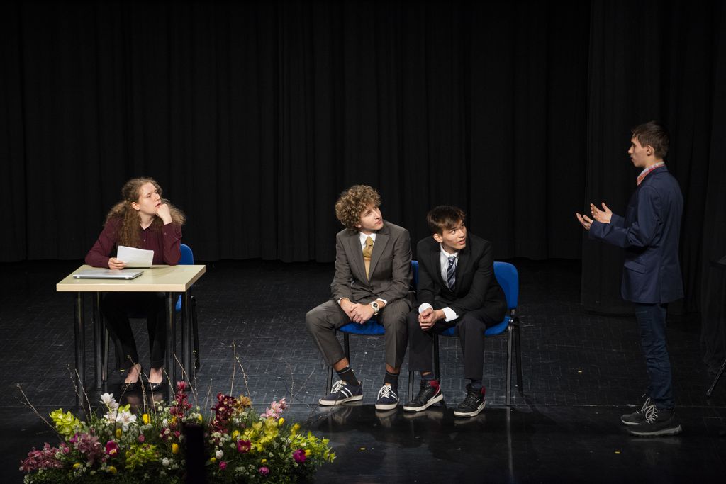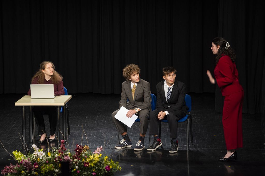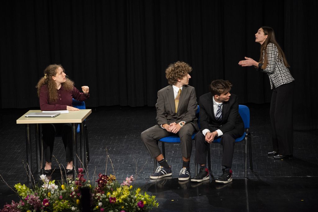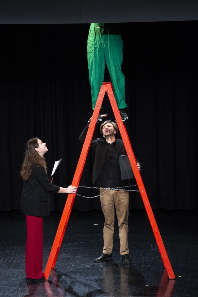 Ko so plesalke in plesalec iz plesnega društva. Livia Liberte zaključili s svojimi točkami, je sledil preprost skeč, v katerem rižija gledališča prosi električarja, da popravi ožičje za medijsko produkcijo.