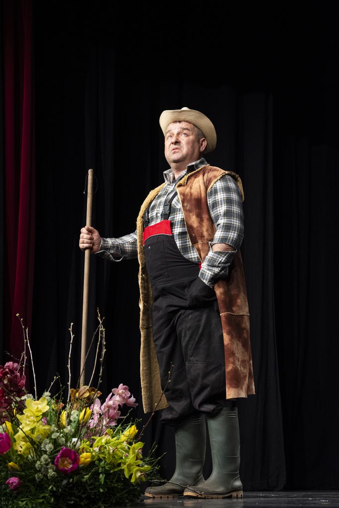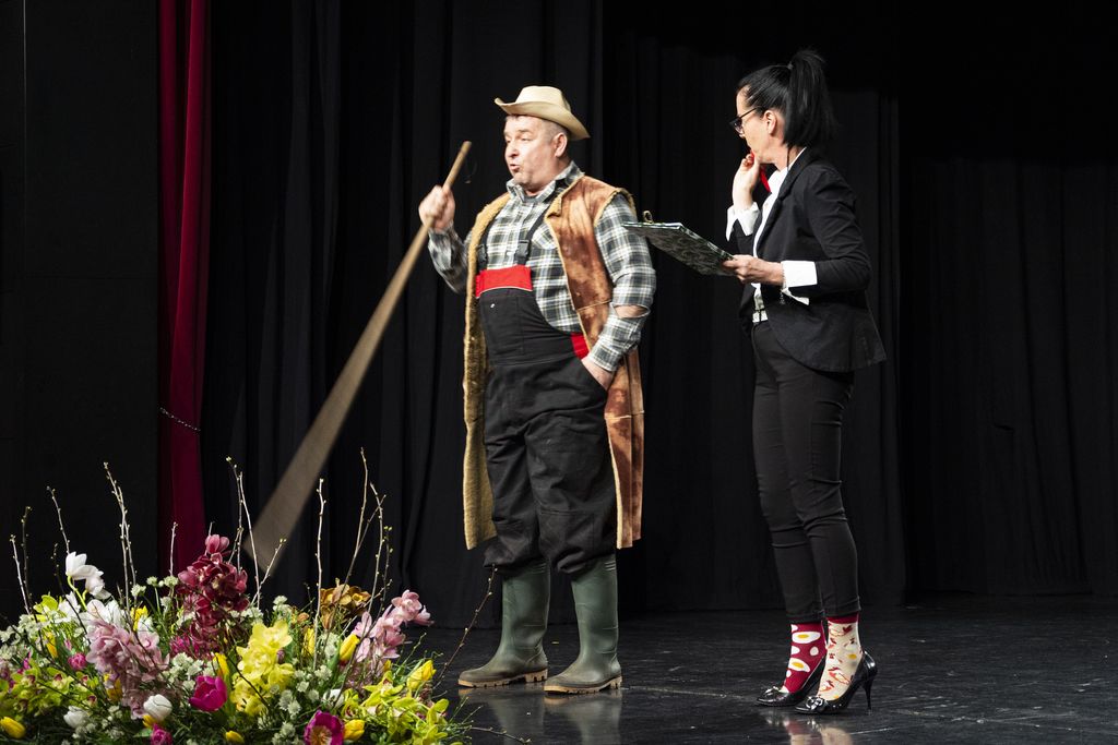 Po oktetu in kvartetu je sledil skeč kmeta, ki spodbuja svoje kravce naj jejo travo. Pri tem hudomušno s palico kaže v posameznike v občinstvu. Med tem ga zmoti ga. inšpektorica, ki ga tragikomično “maltretira”, preverja stanje njegovih kravic, mu vbija glavo koliko metana proizvedejo kravo ter mu za nameček zapove novo zakonsko odločbo o lastništvu nad največ samo 1 kravo na kmeta. Kmet ji odgovarja po stilu zdrave kmečke pameti ter ji na koncu zagotovi, da se ji bo podpisal na obraze ter jo s tem hudomušno zvabi v klet, kamor jo tudi zaklene. Pri tem potolaži občinstvo, da ji ne bo dolgčas, ker ima tam zaklenjenih že nekaj drugih inšpektorjev, med drugim tudi npr. iz davkarije, krajinskega parka, kulturne dedinščine. Skeč g. Kmet zaključi z lepo mislijo enega od našeih velikih pesnikov, ki je imel v začetku februarja svoj dan (F.P.).