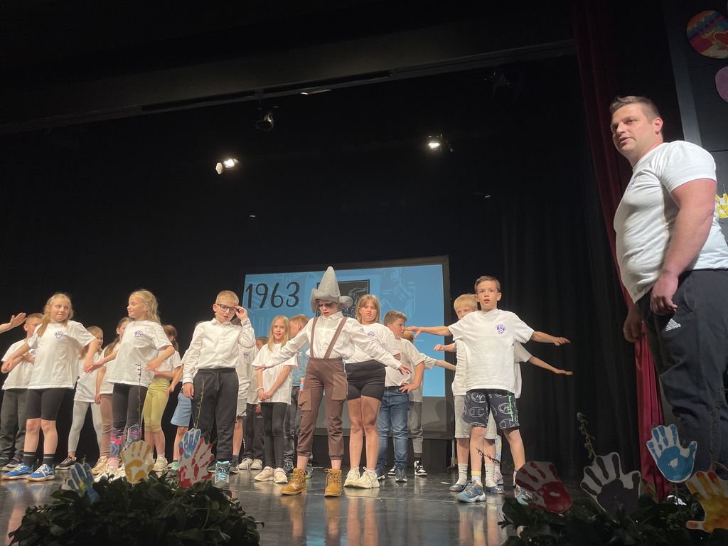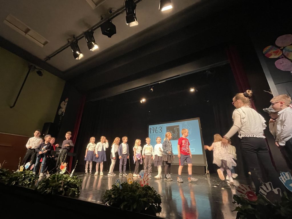 Vse od zahtevnih začetkov leta 1905, preko petdesetih let prejšnjega stoletja in pionirjev, obdobja zlate dobe slovenske popevke v šestdetih, iskanja kuharice v sedemdesetih letih, našla pa sta tudi Mojco, ki je odpela svojo pesem (vlogo je odigrala in glas Mojci posodila Ela Hribar). Z modernejšimi ritmi so se otroci vrnili v leto 2019, za nekaj direndaja pa sta na koncu poskrbela tudi Bedanec in Pehta, ki pa sta ob navdušenju celotne dvorane, odpela tudi svojo verzijo pesmi Kako sva si različna. Ob zaključku prireditve so vsi zbrani učenci zapeli še himno osnovne šole.