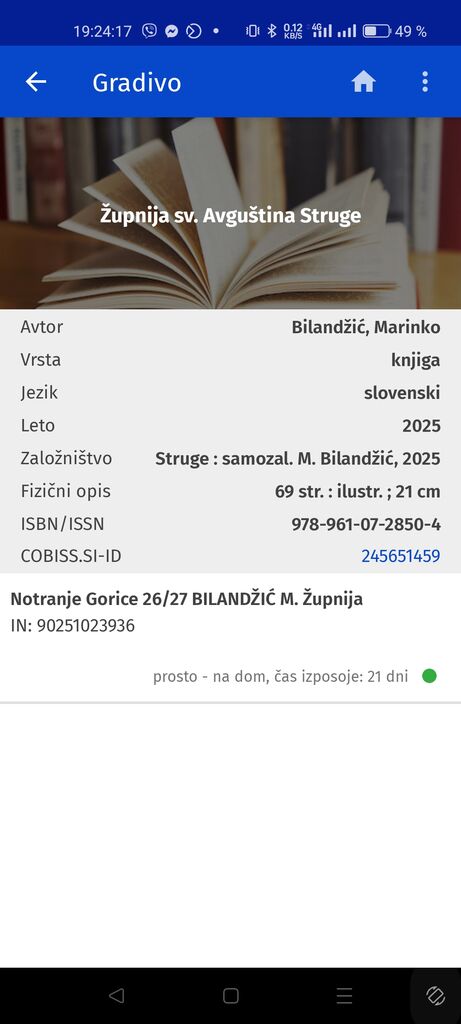 Letos pa je gospod Bilandžić posegel tudi na knjižno področje, saj je izdal knjigo z naslovom "Župnija sv. Avguština, Struge". Ne gre toliko za avtorsko delo, ampak predvsem za kateheze o sv. Avguštinu izpod peresa pokojnega papeža Benedikta XVI., nemškega teologa dr. Josepha Ratzingerja, ki jim je župnik Bilandžić napisal ne tako kratek uvod. Župnija Struge na Dolenjskem je namreč edina v Sloveniji, katere farna cerkev je posvečena cerkvenemu očetu iz Severne Afrike, se pravi sv. Avguštinu.