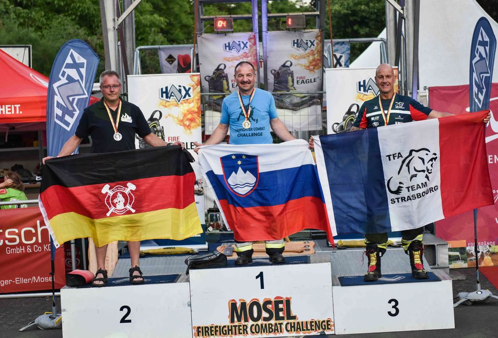 Tekmovanja se je udeležil naš član društva Zdenko Jamnik. Zdenko je na posamičnem nastopu na 5. Mosel Firefighter Combat Challengu v kategoriji M55 bil najhitrejši in v svoji kategoriji dosegel 1. mesto. Drugi dan tekmovanja je nastopil še v dvojicah in z nemškim gasilskim kolegom v tandemu Slovenia/Haix Wild 50’s Friends dosegel še odlično 4. mesto.