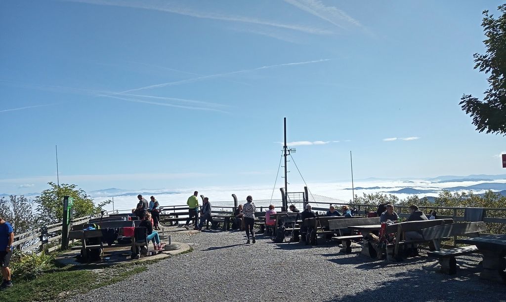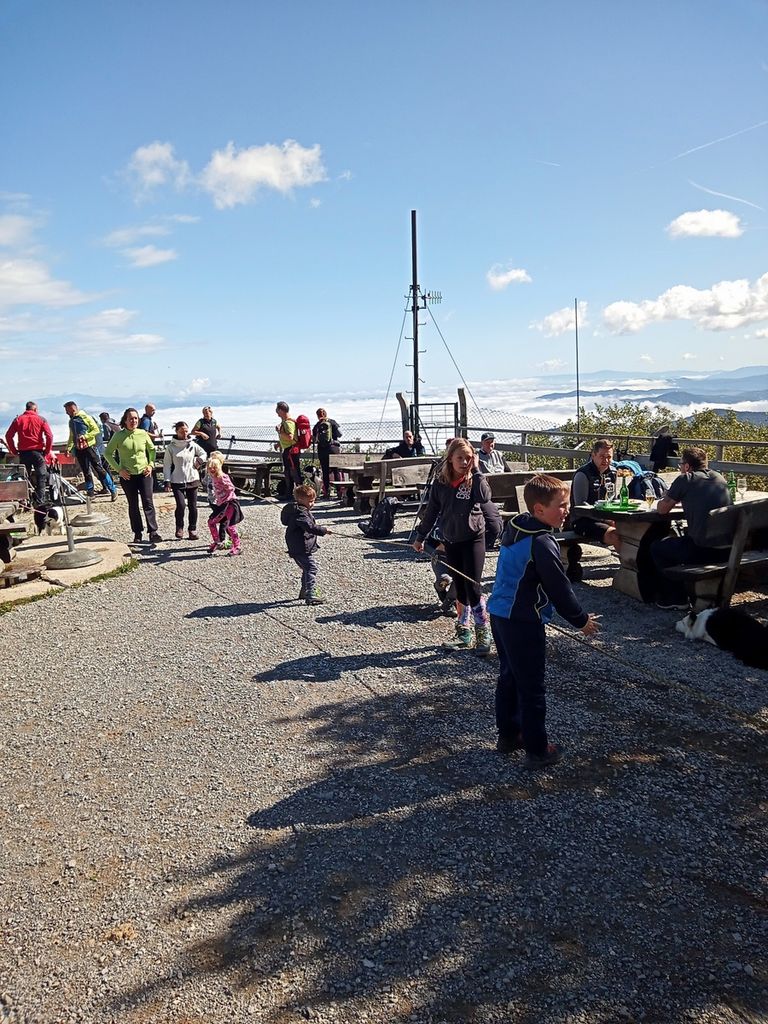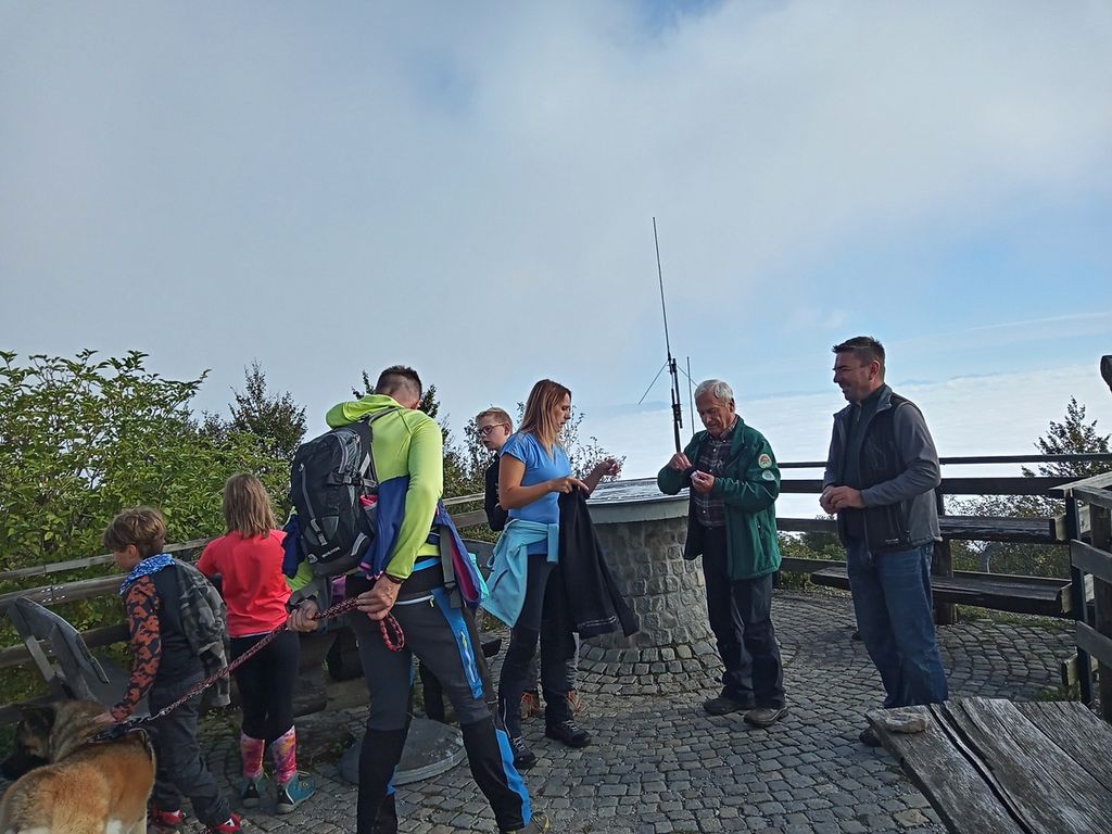 Zjutraj nas je pričakalo lepo sončno jutro, zato smo se lahkih nog pognali proti vrhu. Pot ni bila naporna, tako da so jo zmogli prehoditi tako vrtčevski kot osnovnošolski otroci. Tudi kakšen štirinožni prijatelj je bil vmes. Hov-hov ????.
