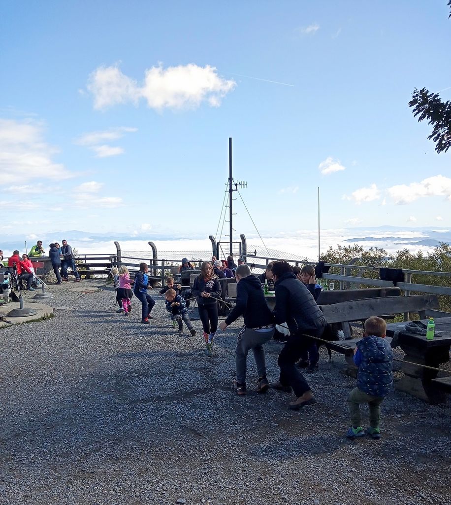 Na vrhu je bil za vse udeležence na voljo čaj, za najmlajše pa so bile organizirane zabavne igre. Z veseljem so se jih udeležili, saj so bili na koncu vsi zmagovalci, ki so se razveselili sladkih in uporabnih nagrad.