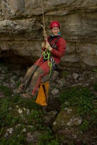 Ponovno smo bili v steni, kjer sem prejšnji mesec prvič srečala vrv, si nadela pas in spoznala kovačijo oz. kup neznanih naprav, s katerimi jamarji upravljajo. Tokrat sem že bolj poznavalsko izvlekla pas, si ga sčasoma opasala, nekaj časa zmedeno buljila v D vponko in krivila zgodnje jutro ter pomanjkanje kave. Tečajnikov nas je bilo tokrat le za peščico. Smo pa zato toliko bolj zagnano grizli vozle, prečnice, lojtrce in odmike. Nekateri smo bili bolj šmrkavi. Pa ne zaradi svojih let ali žalosti (četudi me natolcevanja o globalnem segrevanju navdajajo z gnevom, posebno ob obvezni uporabi zimske garderobe ob skorajmajskih dnevih. Še-vedno-dosleden bralec pa razume, da pisec ne razume). Deloma nas tudi lojtrce morda res niso navdajale s srečo in užitkom, takisto prečnice. Vsekakor pa smo si v duhu »vsi za enega, eden za vse« pomagali, svetovali in se vzpodbujali. Četudi na primer eni s pršutom v roki in dotični pisec nesrečno viseč nad vozlom, ki nikakor ni in ni hotel mimo. Vendar je bil konec srečen in mi niso pojedli vsega pršuta.