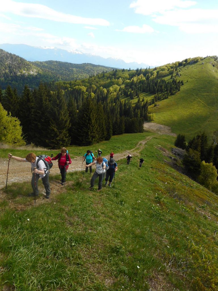 Izlet je bil enkrat že prestavljen, zato je bilo tako veliko zanimanje zanj. Do vznožja planine smo se pripeljali kar s tremi vozili. Po stranski smučarski progi smo se najprej podali do grebena, nato pa po strmem travnatem pobočju med rožicami na prvi vrh Dravh. Nudil je lep pogled proti Sorici ter na Škofjeloško in Cerkljansko hribovje. Prvemu veselju na vrhu je sledil spust in še bolj strm vzpon do prve kupole na vrhu Lajnarja. Pod njim so vidne vojaške utrdbe na Rapalski meji. Pogled je segel v dolino v Baško grapo. Pot je zelo razgledna, vodi po grebenih. Pripeljala nas je na Slatnik. To je najbolj razpotegnjen vrh nad Sorško planino. Vseskozi je polno rovov in v tem času prebujajočega cvetja. Pot ni težka. Po mulatjeri se odpravimo do Možica, ki je najvišji vrh na poti z 1602 metroma. Ostal nam je še Šavnik, ki pa že spada pod spodnje Bohinjske hribe. Kar nekaj metrov smo zgubili s spuščanjem, ki jih je bilo potrebno do vrha nadoknaditi. Nagrajeni smo bili s pogledom na Triglav. Visokogorje je še precej zasneženo.