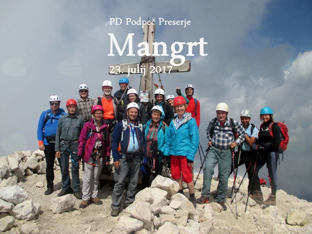 Težko je bila pričakovana nedelja, 23. 7. 2017, ko smo se s PD Podpeč Preserje podali na velikana zahodnih Julijskih Alp, na 2679 metrov visok Mangrt. Da je gora res vabljiva, se je izkazalo s kar 16 udeleženci pohoda.