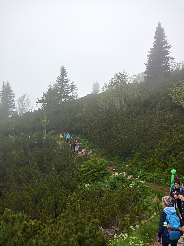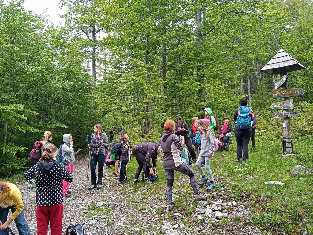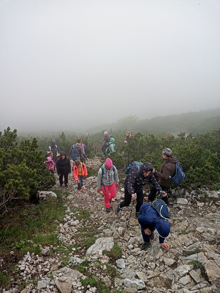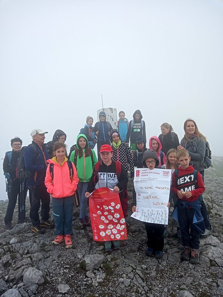 V maju nam je zagodlo vreme, zato smo v juniju malo pohiteli in ker so pred nami počitnice zmanjkuje časa. Izhodišče smo imeli v Sviščakih. Prvo smo se slikali s plakatom, saj smo izlet planirali v Tednih vseživljenskega učenja. Potem smo jo mahnili v hrib. Eni malo hitreje, eni malo počasneje. Pa je nekako šlo. Malo godrnjanja, veliko veselja in energije je bilo v zraku. Škoda pa da vreme ni bilo takšno kot smo si ga najbolj želeli. Na zadnjem parkirišču, kjer bi se mogla že dobro videti koča, je bila prikolica naložena z drvmi. Kot dobri planinci, si nas je kar nekaj obtežilo nahrbtnike s po enim polenom, ki smo ga odnesli do koče. Oskrbnik je bil vesel in nas je pohvalil. Nato smo odbrzeli do vrha, kjer smo se zopet slikali. Žal razgledov ni bilo, čeprav bi tako radi videli z vrha morje. Potem pa v kočo na čaj. Dol je šlo hitreje in z vsakim korakom se je vreme izboljševalo. Pred Domom na Sviščakih pa je bilo prav vroče. Še enkrat smo se slikali, tokrat tudi z baloni, odšli do avtobusa in se odpeljali domov.
