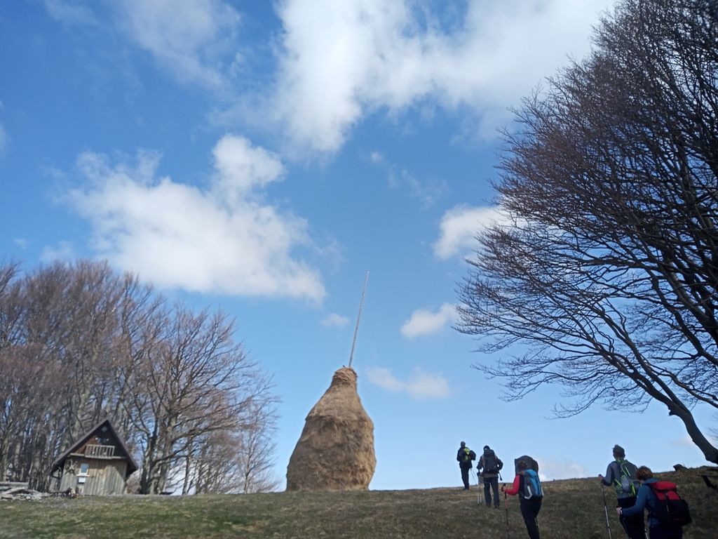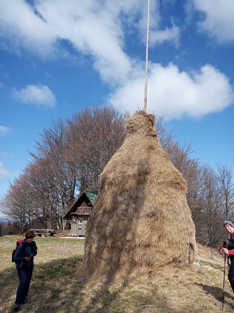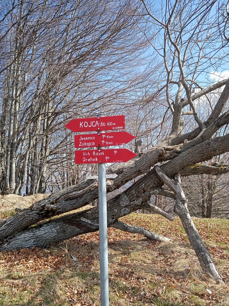 Ravno za en kombi nas je bilo. Dan se je začel v soncu, mi pa smo se vozili na primorski konec. Zapeljali smo se v Zakojco, rojstni kraj pisatelja Franceta Bevka, ki je bil naše izhodišče za osvajanje vrha. Napotili smo se na lepo zeleno travno površino, ki je bila za nas ogrevanje. Potem pa počasi v prebujajoč gozd. Strmina je pokazala zobe, mi pa našo kondicijo. Razen da nam je postajalo vroče, ni bilo hudega. Prečiti smo morali kar zoprno plazovito travnato pobočje, ter kmalu prišli do grebena. Ostala nam je še zadnja strmina in sprehod do vrha. Da smo na cilju, smo vedeli po znameniti kopici sena na vrhu Kojce. Pogledi so res lepi, najlepši na bližnji Porezn in spodnje Bohinjsko hribovje. Po tradiciji smo na vrhu pomalicali in se fotografirali. Vračali smo se po isti poti, je šlo malo hitreje.