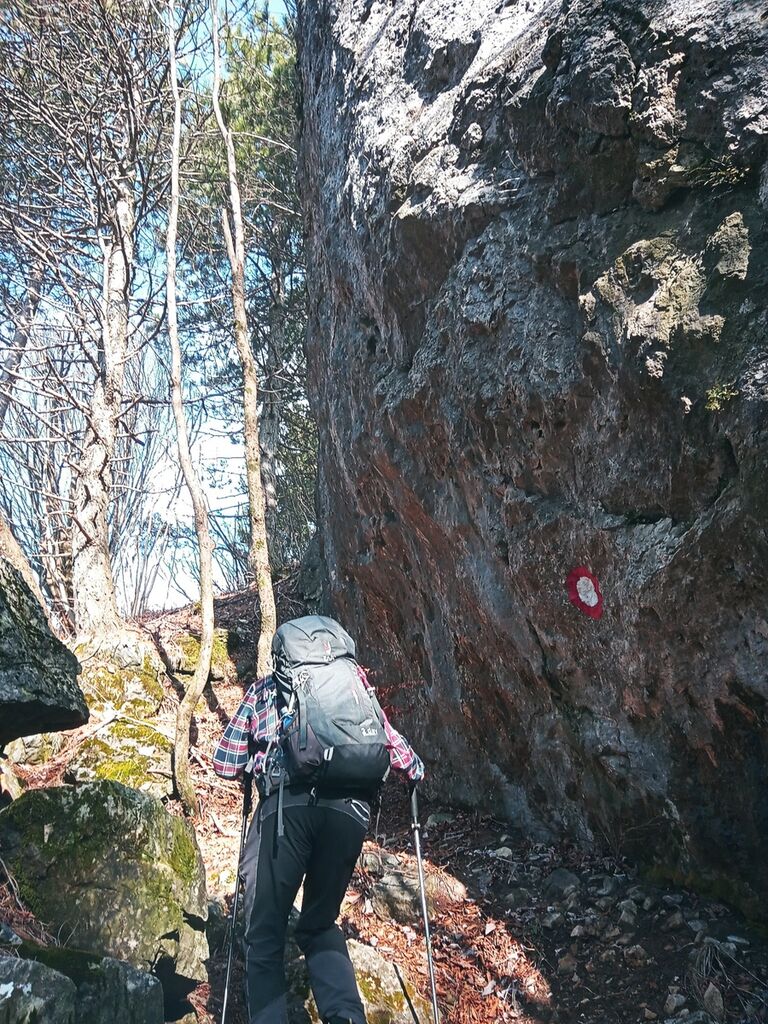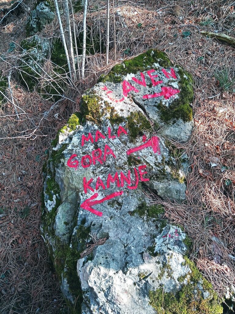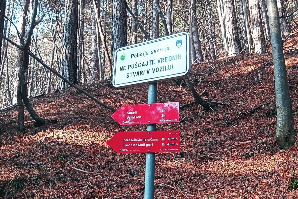 Začeli smo pri tunelih pod Predmejo. Po Srednječavenski poti smo se lepo počasi dvigali. Pot je lepa, v začetku lahkotno pelje skozi gozd. Prečimo pobočje, pridemo do melišča pa še enega. Nad nami se odprejo skale, kot da smo v visokogorju. Prijetno nas greje sonček in na nas pazi Marijina mala kapelica vklesana v kamniti balvan. Pot še vedno ni prestrma. Gremo direktno proti Koči na Mali gori tako da se izognemo hudi strmini. Pri koči smo sami. Imamo prvo pavzo. Ker smo pridno hodili, smo se odločili da gremo še na Kucelj. Lep razgledni vrh, do katerega imamo le pol ure hoda. Ko pridemo iz gozda, se že dviga nad nami. Malo strmejša pot po travnatem pobočju. V bolj pomladnih dneh je rastišče raznih lepih rožic, v tem času pa nas pozdravi le presušena trava in križ na vrhu. Malo se je tudi zaprlo, malo hladno je bilo. Pred nami je bila še pot do Koče Antona Bavčarja na Čavnu. Smo mislili, da bo odprta, a ni bilo sreče. Izpraznili smo še nahrbtnike in se napotili v dolino. Direktno, po moje najbolj strmi poti.