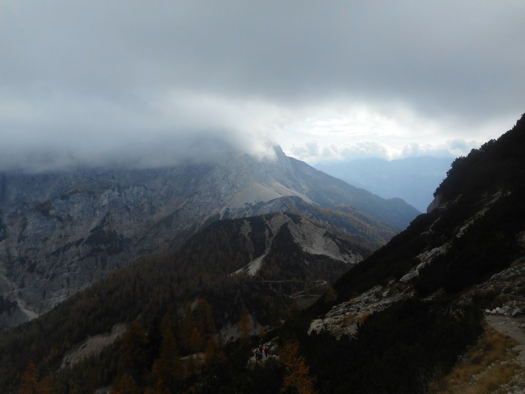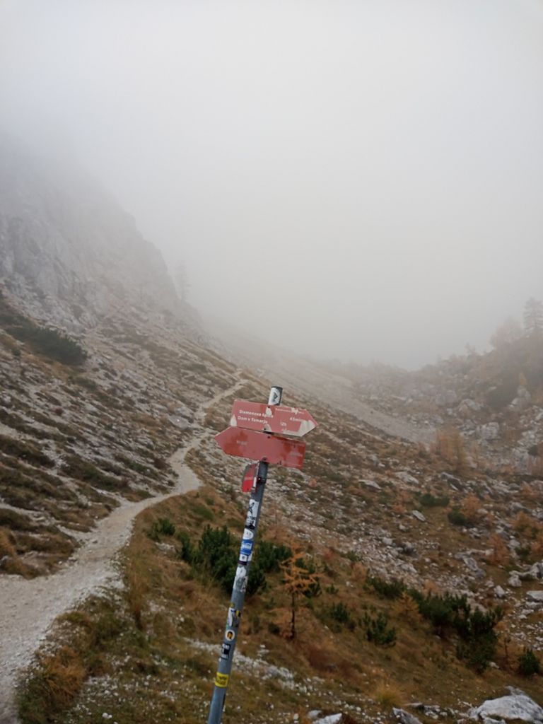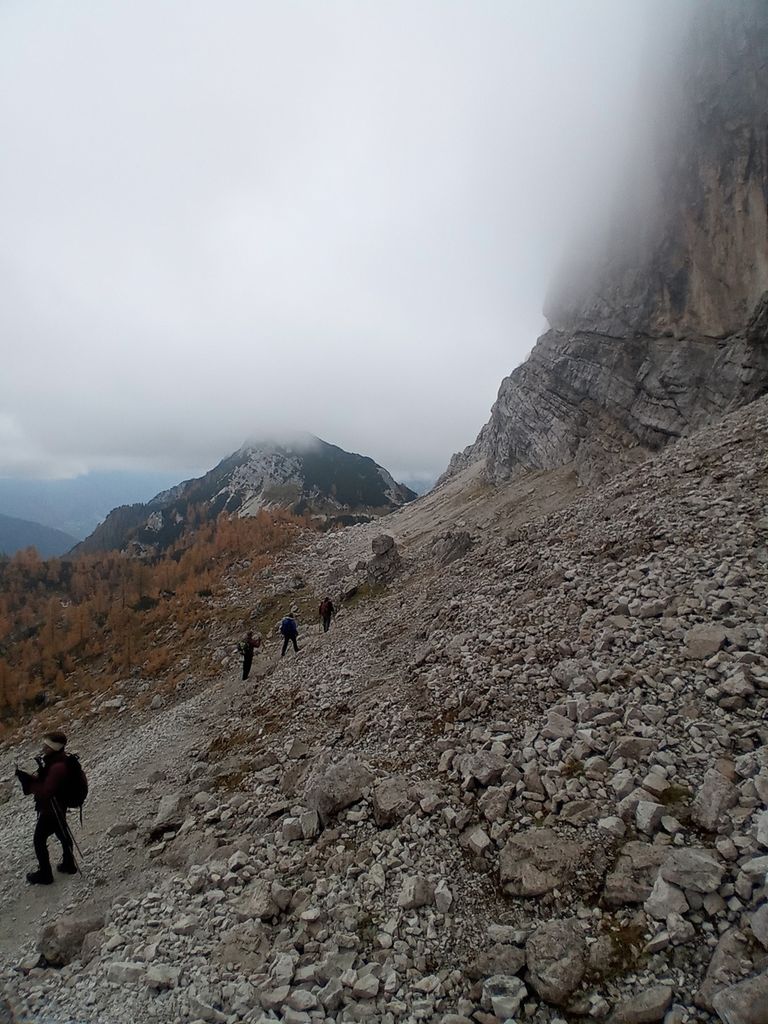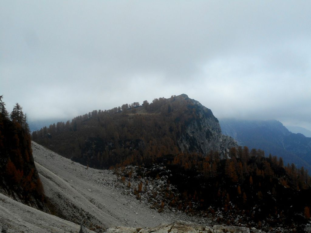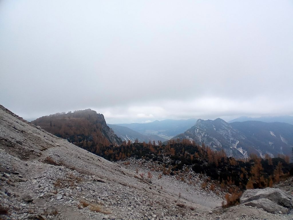 Res so bili lepi na ogled, a je žal manjkala sončna svetloba, ki bi krasoto nadgradila. Sonce se je skrivalo višje nad oblaki, le na trenutke je prebodlo plast megla. Pa to nas ni odvrnilo, da se nebi odpravili proti vrhu. Počasi smo se vzpenjali po stezi iz Vršiča. Na Vratcih smo krenili desno, Mojstrovka je bila za danes za nas prezahtevna. Nekajkrat se pot strmeje vzpne, na koncu pa pripelje na travnato planoto. Nekoč je bilo na njej še jezerce, v katerem se je zrcalil Jalovec. Danes pa le nekakšen ostanek suhe mlakuže. Čisto na vrhu je skrinjica, prostor za slikanje in ob jasnem vremenu za razgledovanje po vrhovih nad dolino Tamar, planiške skakalnice, desno Ciprnik, Vitranc. Vračali smo se po melišču pod Mojstrovko. Skočili do Poštarskega doma, se pod Prisojnikom zazrli v obraz Ajdovske deklice in v kombi sedli pri Erjavčevi koči.